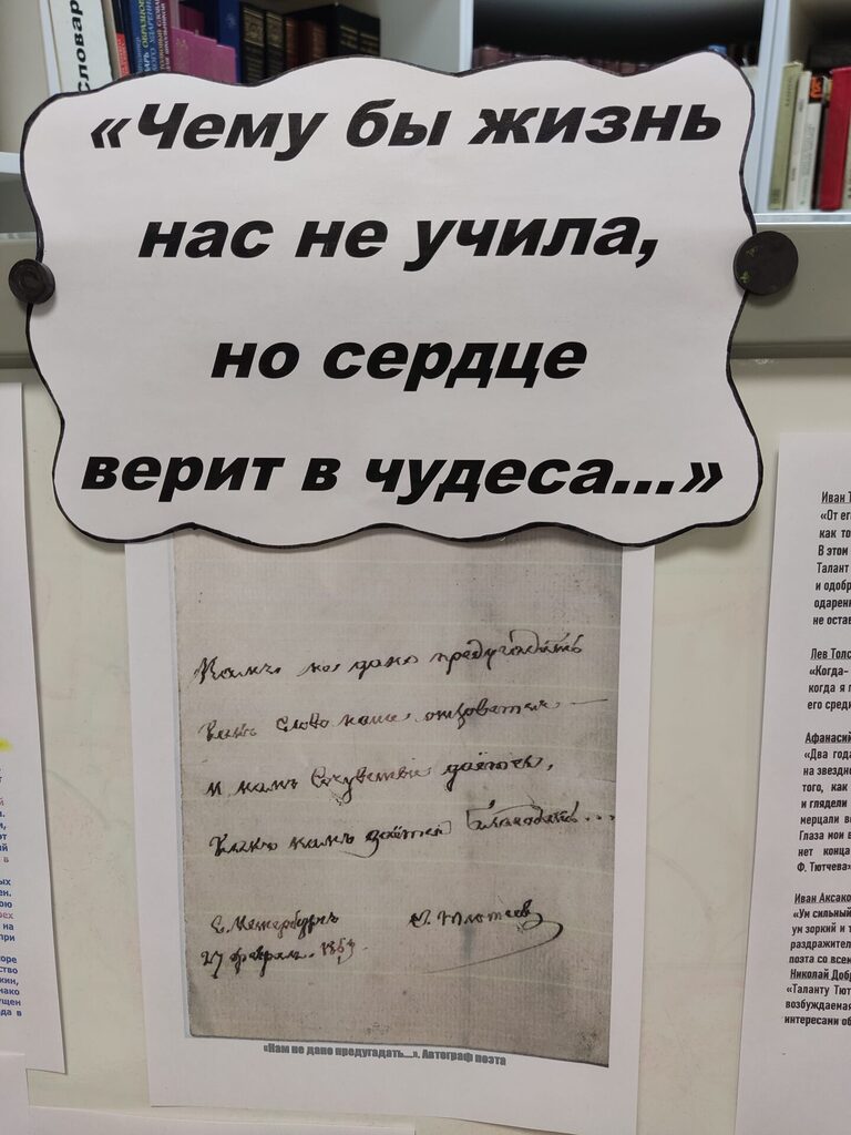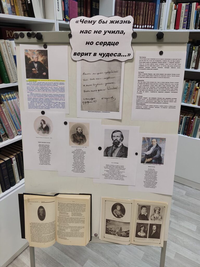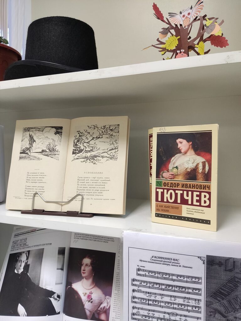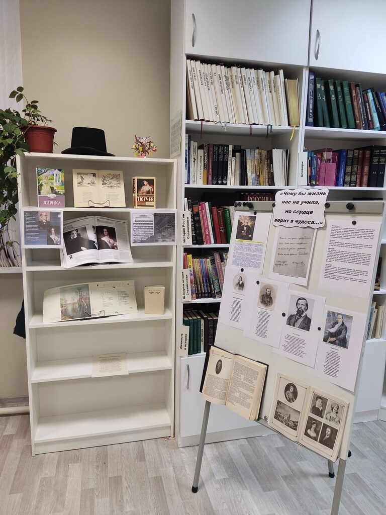 Под таким заголовком в библиотеке гимназии проходит выставка, посвященная творчеству Федора Ивановича Тютчева. 5 декабря 2023 года исполнилось 220 лет со дня рождения поэта.