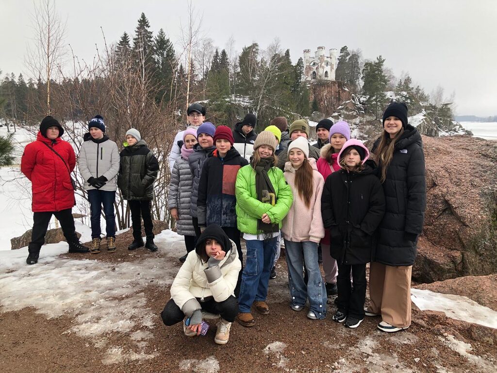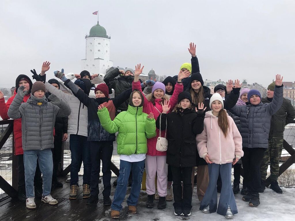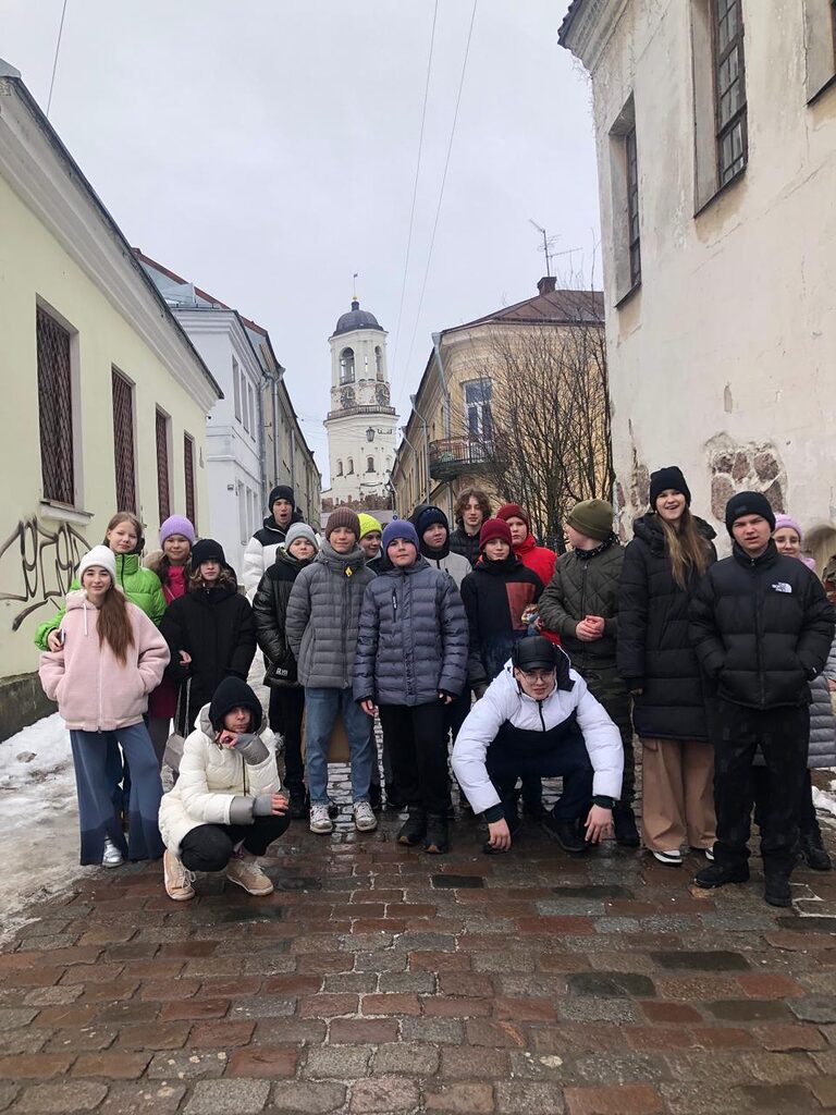 Перед началом весенних каникул ученики 7 класса вместе с классным руководителем Еленой Анатольевной Егоровой совершили экскурсию в Выборг. Они познакомились с богатой историей этого города, прогулялись по его старым улочкам, поднялись на самую высокую точку на Батарейной горе, полюбовались памятниками архитектуры, выпили кофе в единственной в Выборге трамвае-кофейне «Выборгский трамвай».
