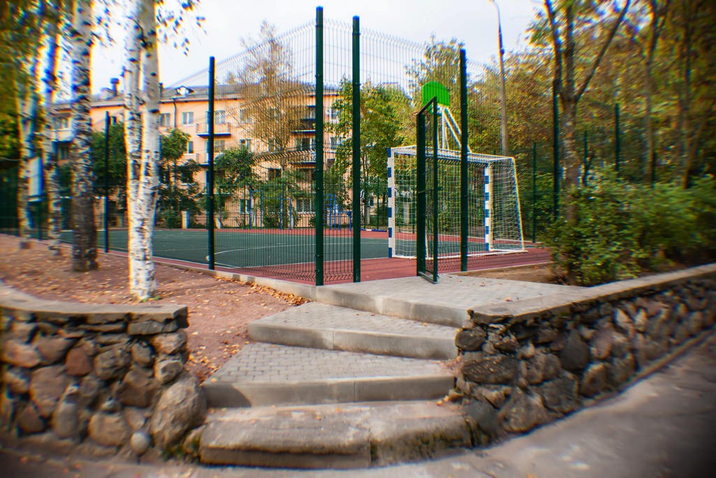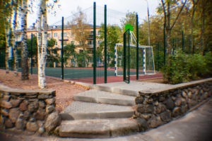 | о специальных объектах спорта | Внутренний двор с игровыми и спортивными площадками. |