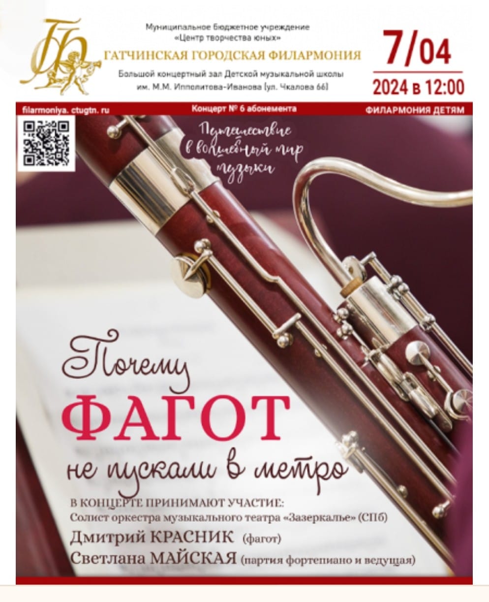 А ещë ребятам рассказали, что фагот можно разобрать и уложить по частям в чемоданчик, чтобы удобно было его переносить и перевозить, например, в метро. Подарком для всех стало исполнение «Концерта для фагота» композитора Антонио Вивальди.