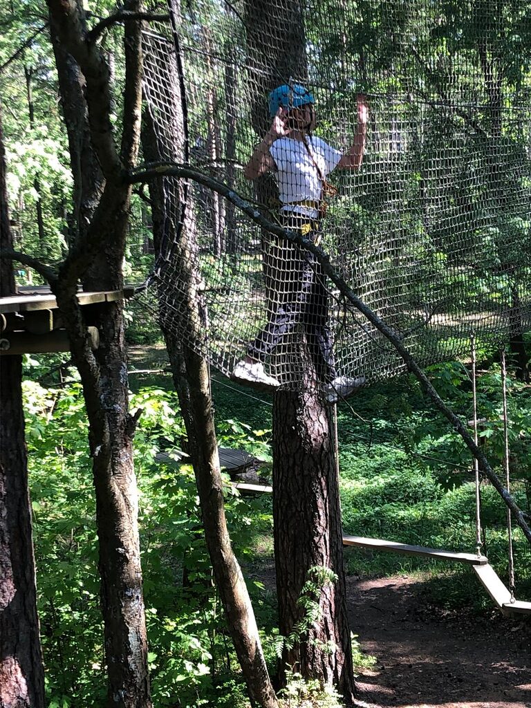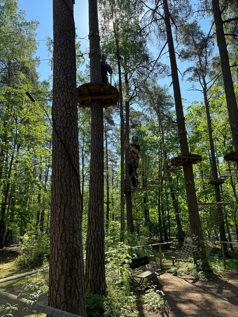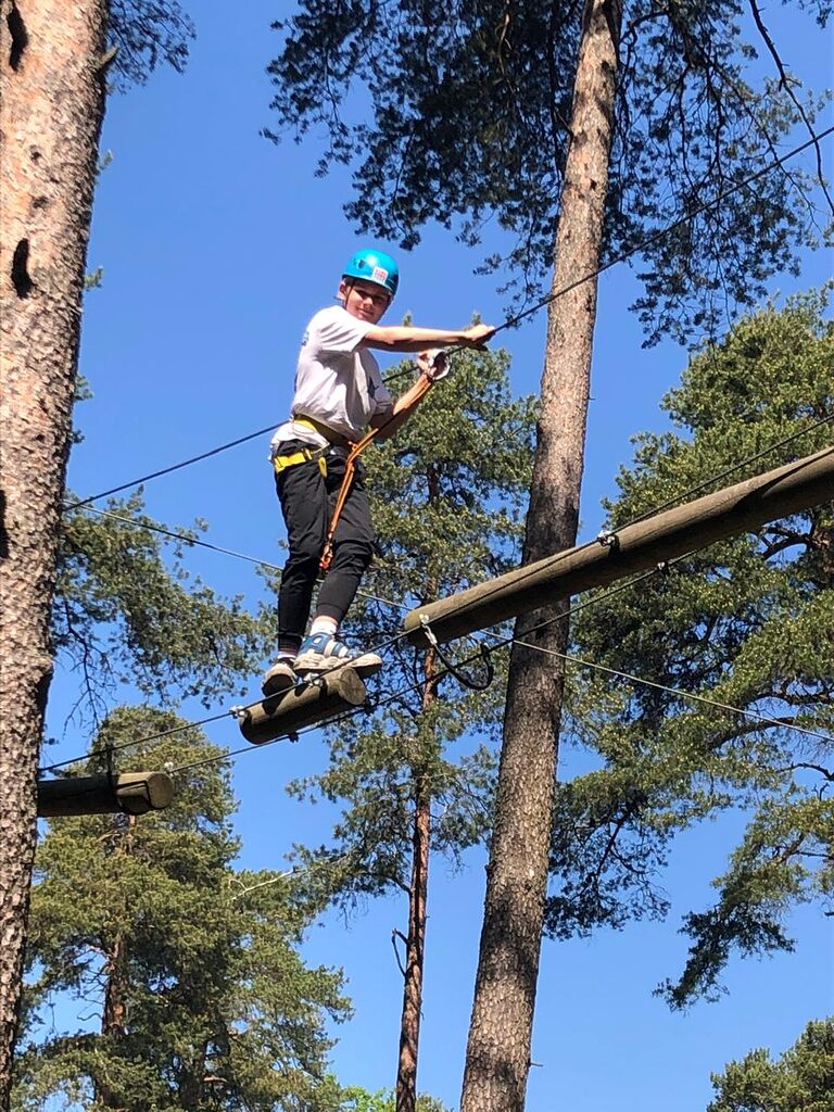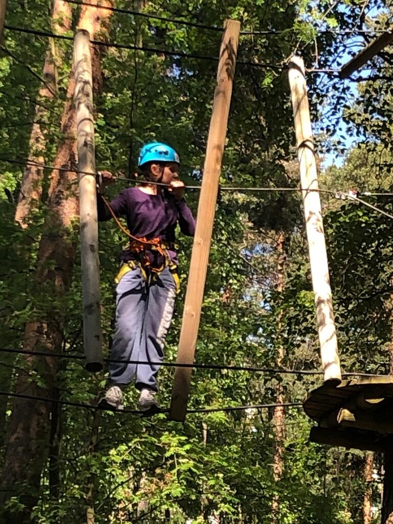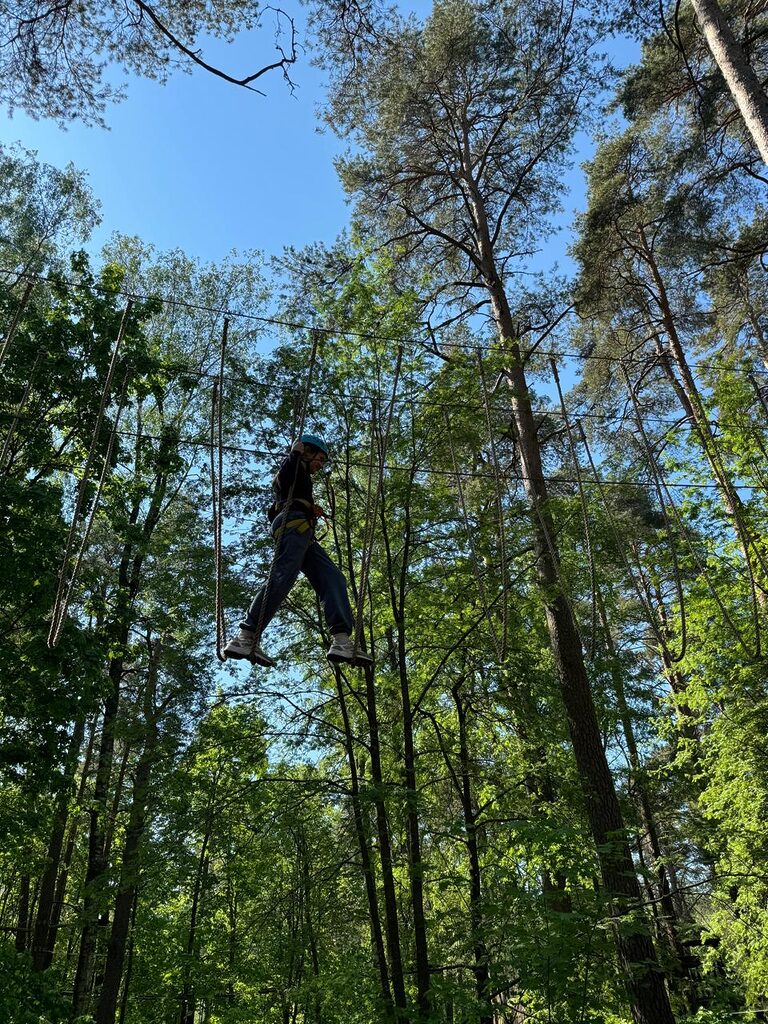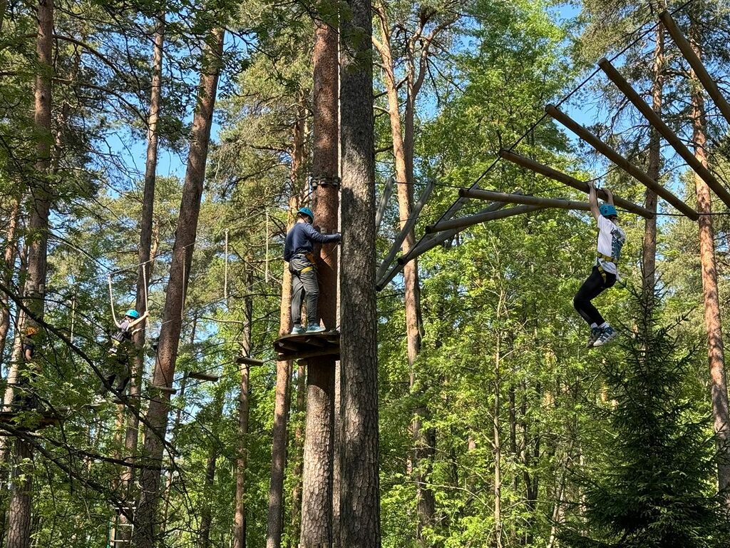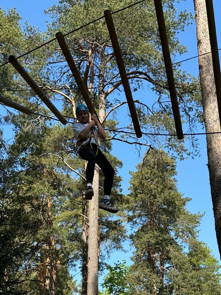 Веревочный городок состоит из нескольких трасс разной сложности, подходящих для ребят разного возраста и уровня физической подготовки. Учащиеся как 5, так и 7 класса смогли попробовать свои силы на каждой из них.