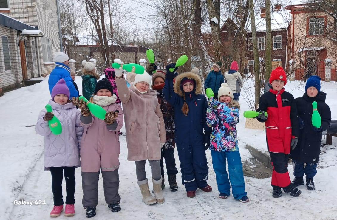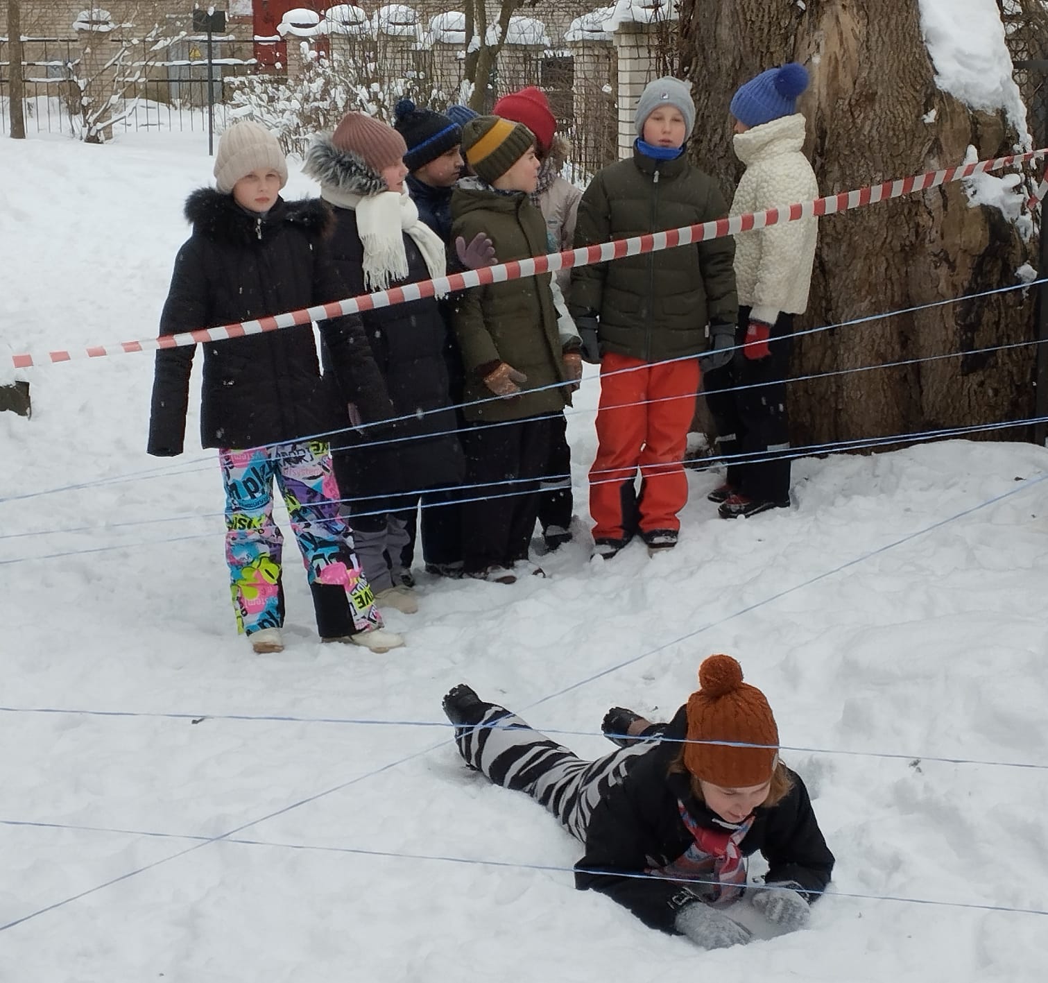 Ребята старательно искали «мины», спрятанные в снегу, соревновались в меткости, бросая мячики в условленные цели, с интересом отвечали на вопросы о великих сражениях, военной технике и подвигах героев. На «Полосе препятствий» гимназисты демонстрировали ловкость, преодолевая «преграды» ползком.