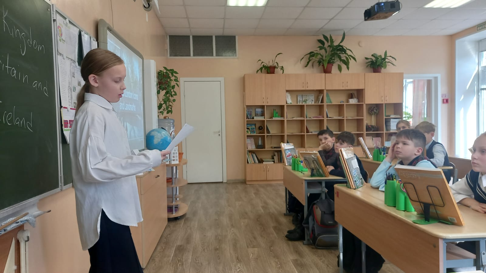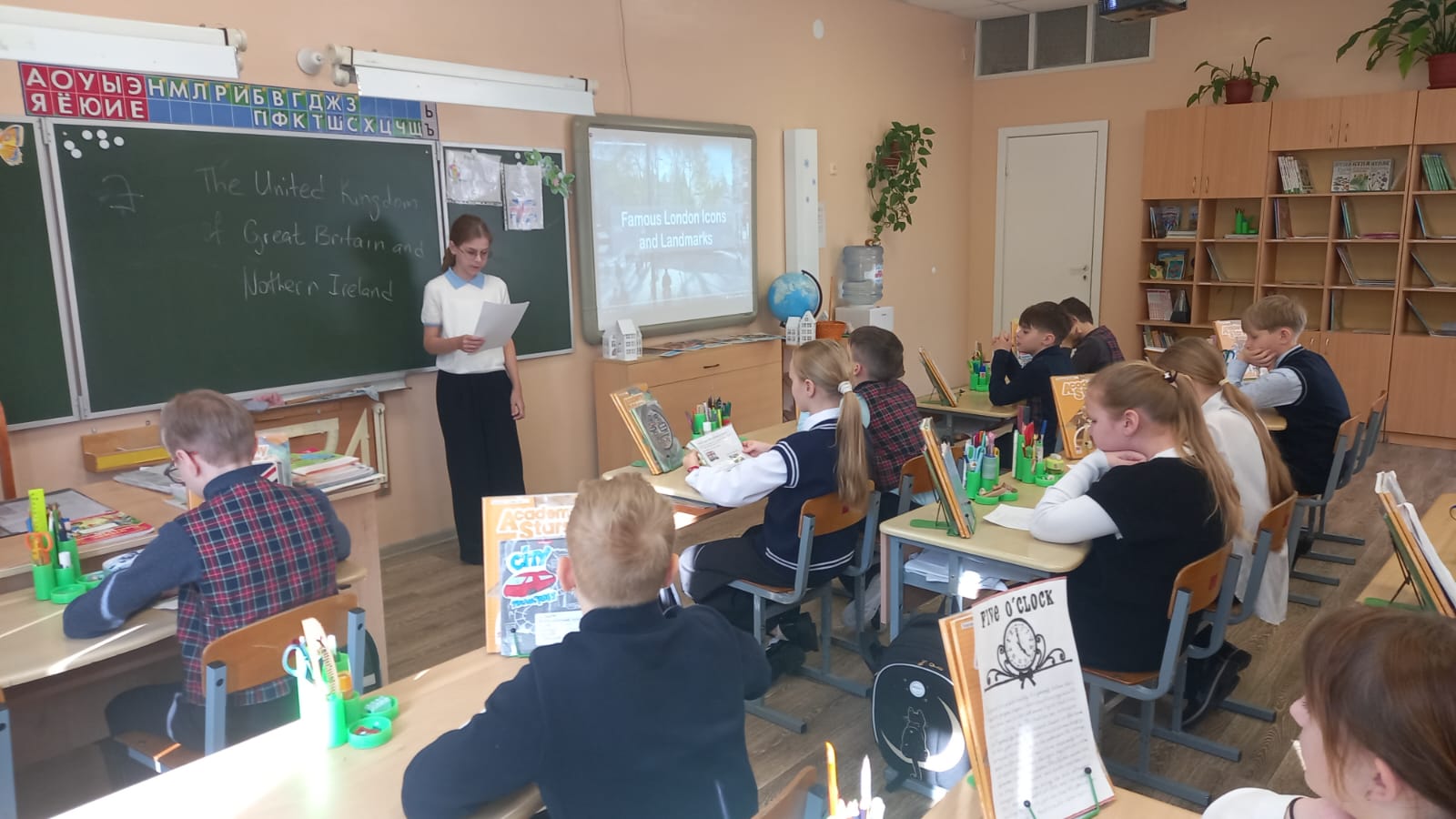 Финальное занятие в 4 классе в рамках недели английского языка проходило в формате выступлений. Сначала четвероклассники охотно вспомнили традиции Великобритании и с удовольствием поделились интересными фактами, полученными в ходе знакомства с достопримечательностями этой страны.